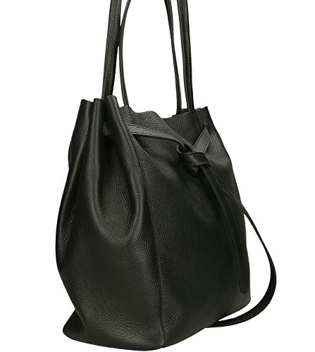 Freyday - Borsa shopper da donna, in vera pelle, con tasca interna, disponibile in diversi colori, HS01, Nero, Medium