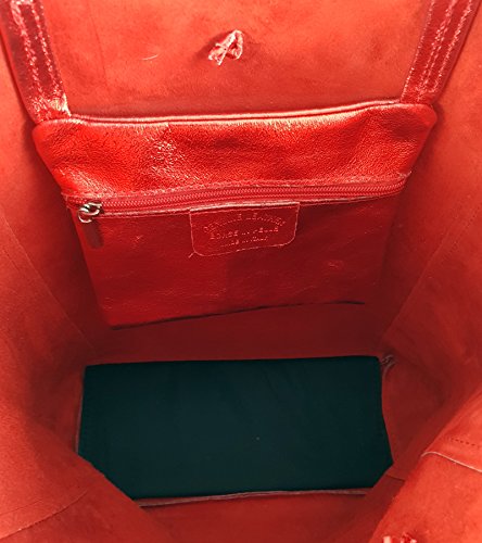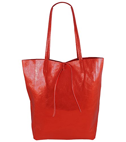 Freyday Borsa shopper da donna in vera pelle, con tasca interna, in diversi colori, look metallizzato S01, rosso metallizzato, Large