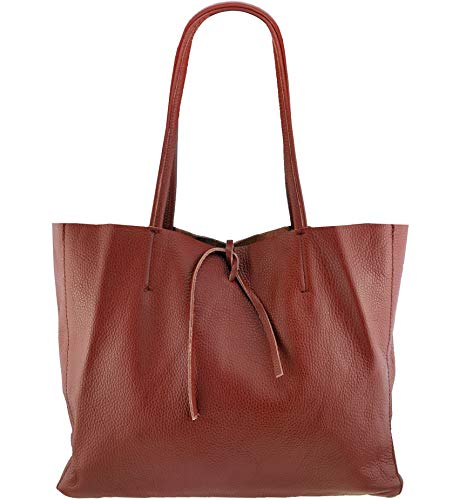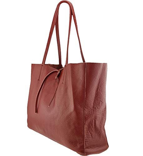 Freyday Borsa shopper originale in vera pelle con tasca interna in diversi colori S04, rosso scuro, Large