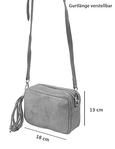 Freyday C02 - Borsa a tracolla in vera pelle, 20 x 15 cm, Beige (Beige glitter.), Small