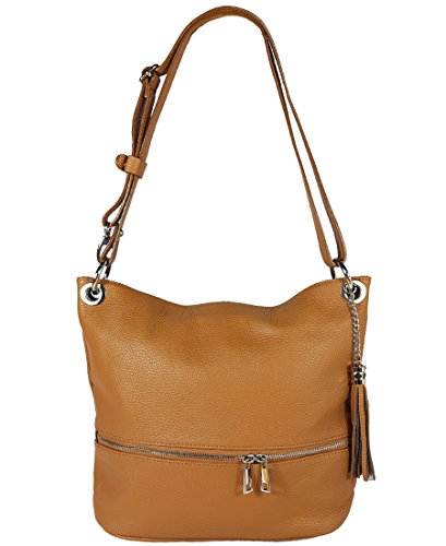 Freyday Borsa a tracolla in vera pelle in molti colori e tracolla regolabile KH03 cammello