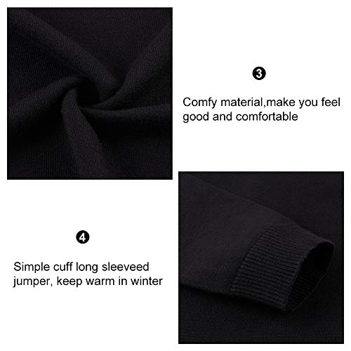 Rave on Friday Maglioni Pullover Casual da Uomo Slim Fit A Maniche Lunghe in Tessuto Lavorato A Maglia con Zip A Collo Alto Maglione Polo Nero XL