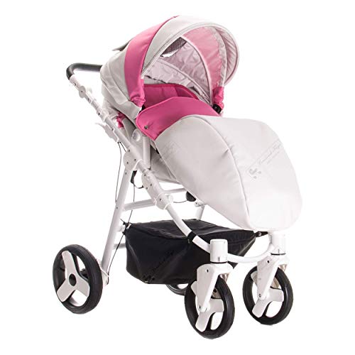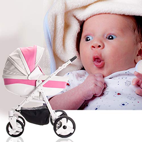Friedrich Hugo | Modello Easy Comfort | 3 in 1 Passeggino combinato | Colore: WHITE PINK & Eco Leather