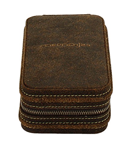 Friedrich|23 custodia per 2 orologi, 7,5 x 16,5 x 4,5 cm, vera pelle, con chiusura lampo, marrone, 27019-6