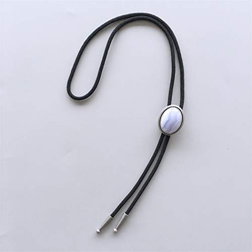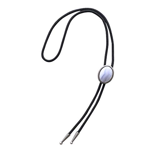 JEAN'S FRIEND New Vintage Silver Plated Nature Blue Ripple Agate Stone Bolo Tie Cravatta