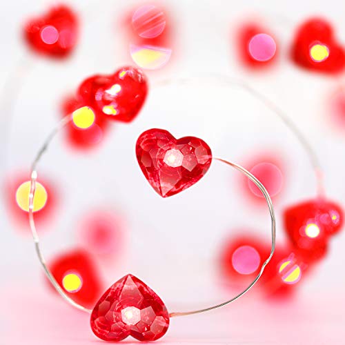 Adorabile decorazione: filo rame argentato 10 piedi e 40 luci a cuore rosse a LED, la dimensione del cuore è 0,6 x 0,6 pollici/ 1,5 x 1,5 cm;