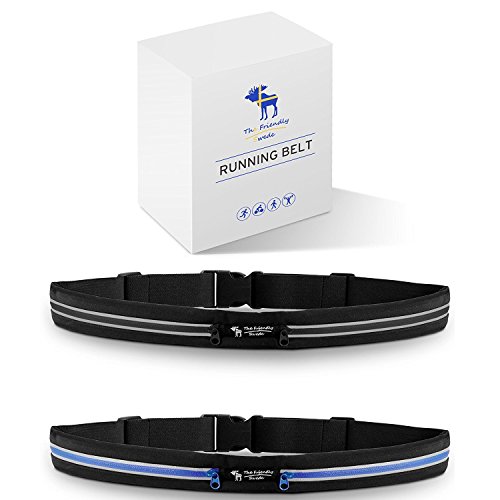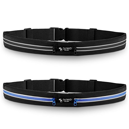 The Friendly Swede Premium - Set di 2 pezzi con cintura con tasche, ideale come marsupio per la corsa, Blu+Nero - Nuova Versione con Tasche più Capienti