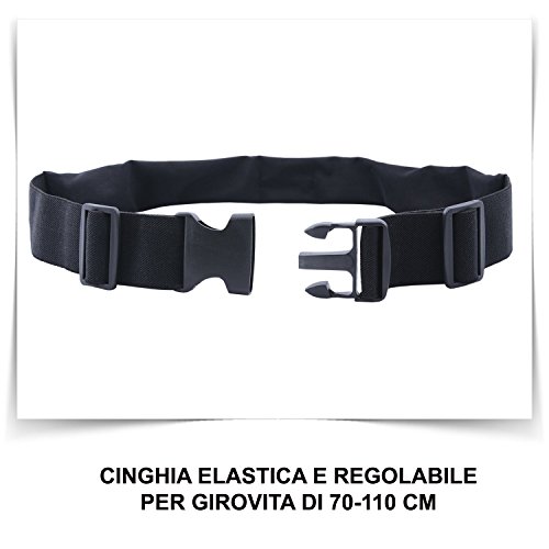 Nota: le cinture da sport sono resistenti all'acqua, ovvero non completamente impermeabili. Le tasche sono adatte ai più comuni telefoni cellulari (iPhone, Samsung Galaxy, ecc.) fino a una dimensione di 5 pollici.