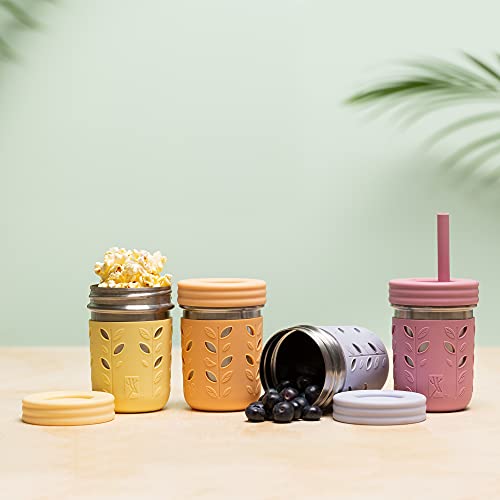 Elk and Friends Bicchieri in acciaio inox | Mason Jar 283,5 g | Coppe per bambini e bambini con maniche in silicone e cannucce in silicone con tappo | Coppe Sippy, tazze a prova di fuoriuscite per bambini, tazze per frullati