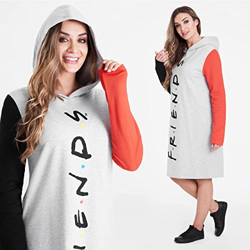 FELPE DONNA A VESTITO DI FRIENDS: felpa oversize a vestito della collezione Friends abbigliamento. Felpa con cappuccio ad abito realizzata in morbido cotone, un must per le fan della serie TV. Più modelli disponibili.