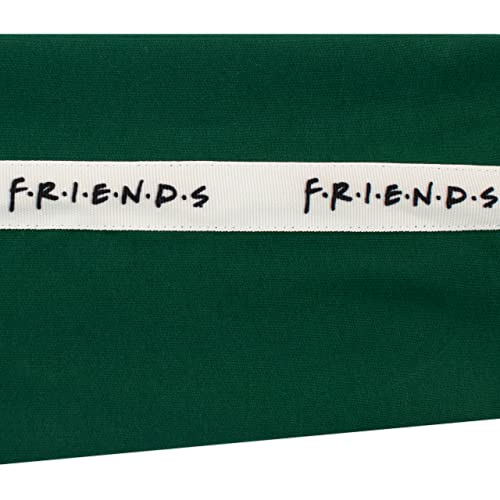 Un maglione verde Friends che mostra gli iconici loghi di Central Perk e Friends e presenta un nastro bianco lungo le maniche con una cintura elasticizzata per mantenere il calore in