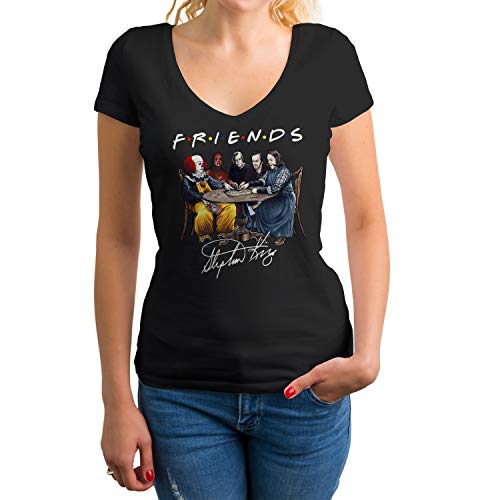 Friends Horror Movies Inspired By Stephen King Characters Anime Camicia Donna con Scollo a V Nera Size M