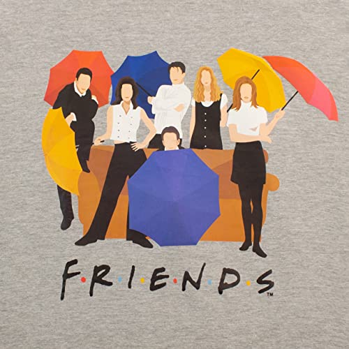 La maglia grigia presenta la stampa stile poster degli amici in posa con sotto il logo di Friends, in abbinamento, pantaloni neri con il motivo del logo.