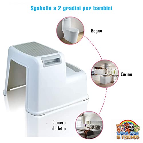 Lama Sam & Friends - Sgabello a due stadi per bambini di età superiore ai 18 mesi con funzione antiscivolo (Grigio-Grigio)