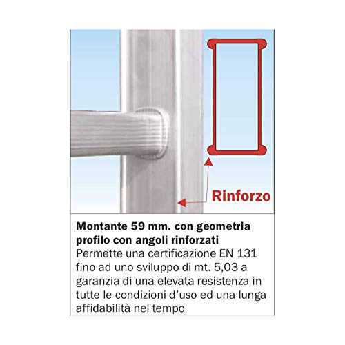Frigerio Scala Professionale Sfilo Telescopico, Alluminio, Gradini 10+10, Portata 150 Kg, Lunghezza 5,03Mt, SCA 1970/20R
