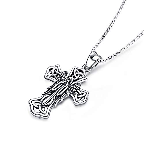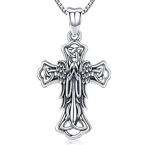 Friggem Gesù Croce Crocifisso con nodi celtici Collana e pendente in argento sterling per donne e uomini, Regalo per la festa della mamma