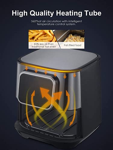 【Capacità XXL-5,5L】 Il cestino quadrato da 5,5L con capacità XXL consente di preparare cibo per 4-6 persone contemporaneamente. Usa la friggitrice ad aria da 1700 W per preparare rapidamente un pasto per la tua famiglia. Un design conveniente per la tua famiglia