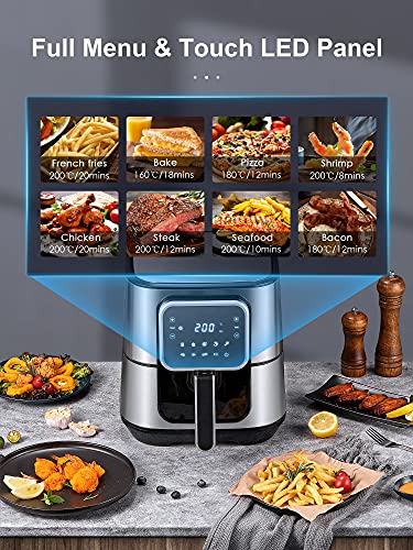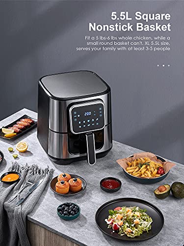 Friggitrice ad Aria Calda, Airfryer 5,5L XXL in Acciaio Inossidabile, 8 Programmi, Pulizia Facile, Senza Olio, Touchscreen LED, 40 + Ricetta, Argento, 1700W[Classe di efficienza energetica A+++]