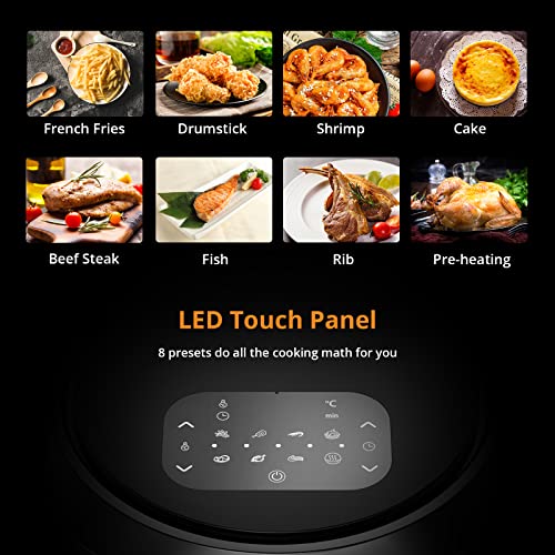 Stile di vita più sano: la nuova friggitrice ad aria calda offre gli aromi di un forno e la versatilità di una friggitrice ad aria, riducendo il volume dell'olio dell'85%. Porta il piacere di diversi ingredienti con metodi di cottura più sani che possono preparare bistecche, cosce, gamberetti, pesce, pizza, pancetta, patate fritte, verdure, ecc. allo stesso tempo lo stesso sapore croccante e succoso del fritto