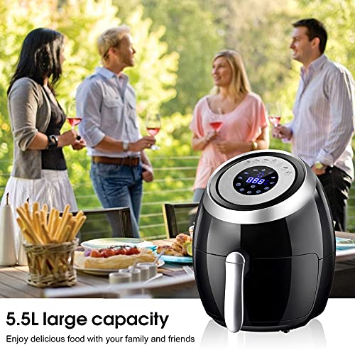 Friggitrice ad Aria Calda Senza Olio, Air Fryer con 7 Programmi, Tempo Temperatura Regolabili Display Digitale, Friggitrice Elettrica 1500w 5.5L senza PFOA&BPA