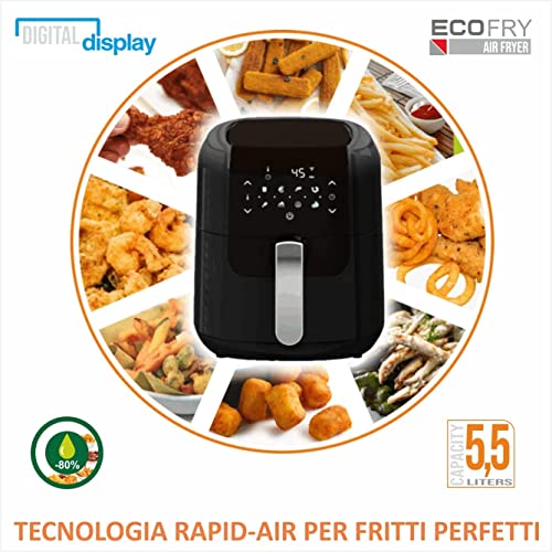 APP LIFE Friggitrice ad Aria Calda Senza Olio - 5,5 Litri - ECOFRY 1400W con Griglia Timer e ricettario - Friggitrice Senza Olio - Friggitrice ad Aria Calda da 80° a 200° C