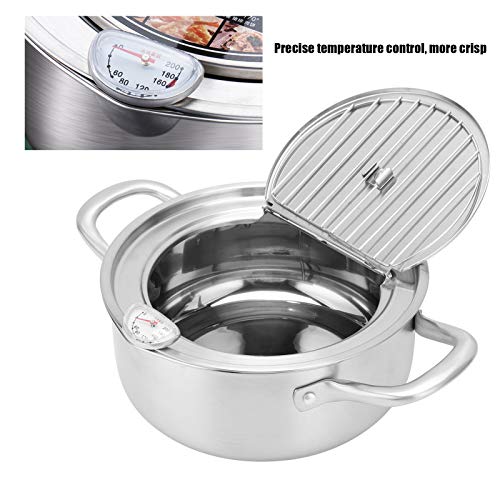 Friggitrice da Cucina Friggitrice da Cucina Controllo della Temperatura Padella per Trucioli in Acciaio Inossidabile 304 Pentola per Friggere con Coperchio del Termometro Utensili da Cucina(24cm)