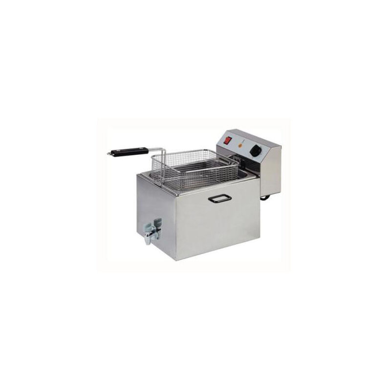 Codice RS1028 - Friggitrice elettrica da banco a 1 vasca, modello FI-FR8R, 230 volt, 3.0 kw, dimensioni cm. 27x49x36.5 (lxpxh), vasca da lt.8, capacità cesto 1 kg, produzione oraria 8 kg, temperatura di lavoro 50-190°C. Struttura, vasca e coperchio in acciaio inox. Cestelli a rete estraibili in filo cromato. Manici cestelli e pomelli coperchi in plastica termoisolante. Resistenze inox. Termostato di sicurezza con pulsante di ripristino. Testata e resistenze removibili. Rubinetto di scarico.