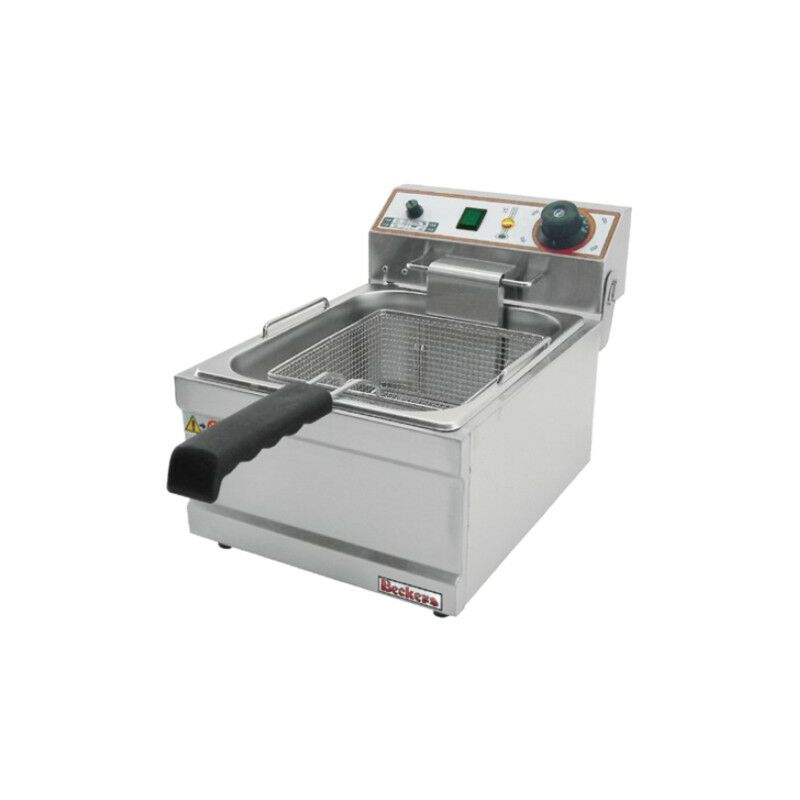 Codice RS1029 - Friggitrice elettrica da banco a 1 vasca, modello BE-FB6LT, 230 volt, 3.0 kw, dimensioni cm. 29.5x43x29 (lxpxh), dotata di n.1 cesto da cm. 20x22x10, capacità vasca 6 lt, senza rubinetto di scarico. Le friggitrici elettriche da banco a zona fredda sono costruite per essere usate con grande praticità nella ristorazione rapida. Composte da elementi facilmente smontabili per una semplice manutenzione. Costruite in acciaio inox. Dotate di termostato di regolazione della temperatura e termico di sicurezza a riarmo manuale.