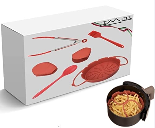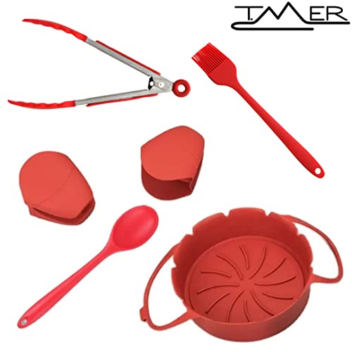 Kit per friggitrice ad aria e forno da cucina completo di ogni componente utile allo chef di turno. Contenitore 22x6.5, pinza, cucchiaio, presine e pennello