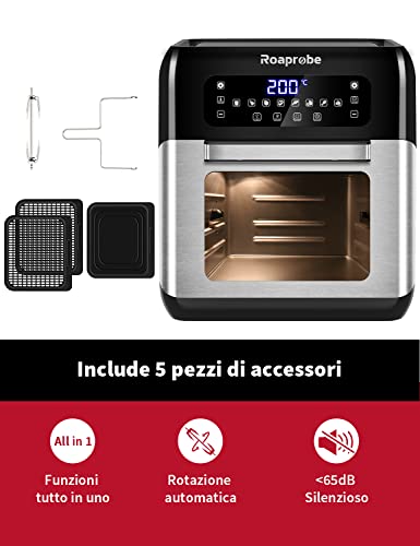 Friggitrice ad aria 10 litri, Roaprobe Forno ad aria calda in offerta, All In 1 Air fryer Oven, LED touch screen, Friggere, Griglia, Arrostir, 5 Accessori e Ricettario, senza BPA&PFOA