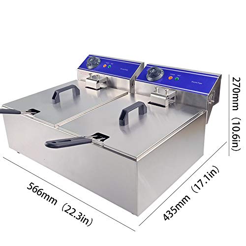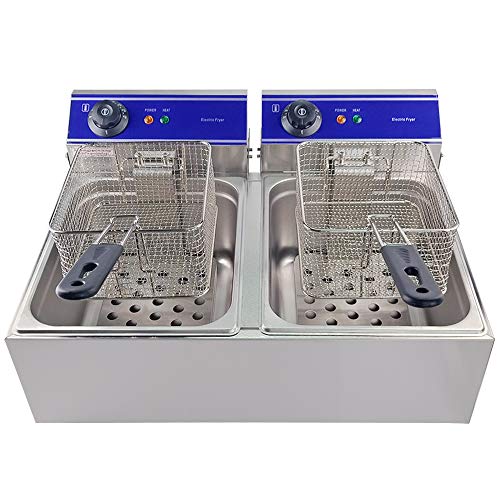 Friggitrice professionale elettrica in acciaio inossidabile (10 L + 10 L, 3000 + 3000 Watt, 220 V-240 V, Acciaio inox)
