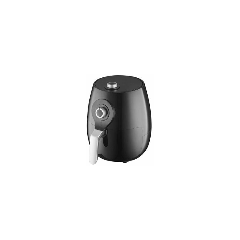 Friggitrice elettrica con 1500 W di potenza. Cucina senza olio per cibi più sani. 6 programmi guida preinstallati per cucinare facilmente. Tempo e temperatura regolabili tramite rotelle girevoli. Capacità cestello interno da 5 litri. Cestello estraibile con interno antiaderente. Cucina facilmente senza odori o rifiuti. Design compatto: ø30cm x 35cm di altezza.