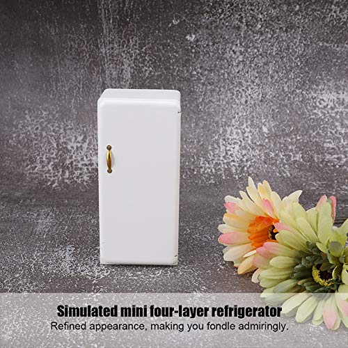 1:12 Frigorifero per casa delle Bambole in Miniatura, Mini casa delle Bambole in Legno Frigorifero a Quattro Strati Mobili per Bambini Finta educativo Gioca a Giocattoli per la Decorazione (Bianca)