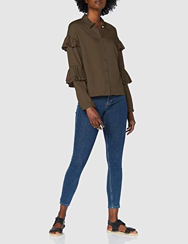 FIND Frill Detail, Camicia Donna, Verde (Khaki), Small