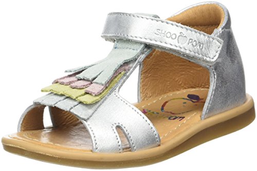 Shoo Pom TITY Fringe, Sandali Punta Aperta Bambino, Argento Silver Pa Stel, 27 EU