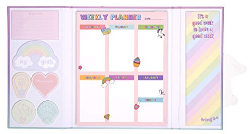 Fringo - Planner personale per bambine, programma settimanale per la scuola, con etichette adesive Unicorno credere