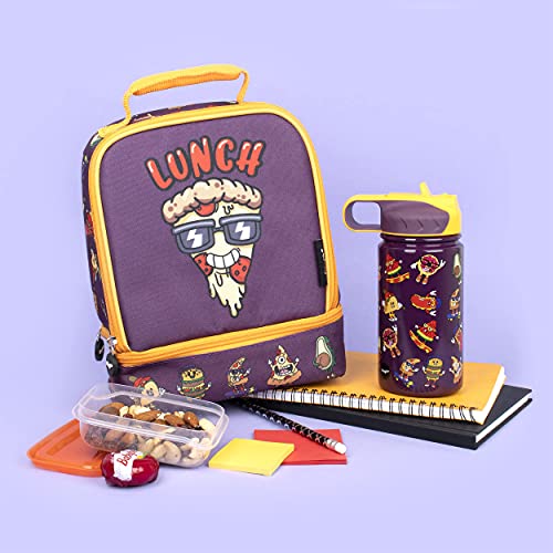 BORSA DA PRANZO PER BAMBINI: Questa divertente scatola da pranzo per ragazzi e ragazze è ottima per i bambini in movimento! Caratterizzata da una pizza divertente, sorridente e cool, che indossa occhiali da sole (ovviamente!), questa scatola per il pranzo in materiale è divertente e pratica! Dalle pizze da skateboard, agli hamburger musicali, questa divertente scatola termica per il pranzo è la più divertente dell'isolato!