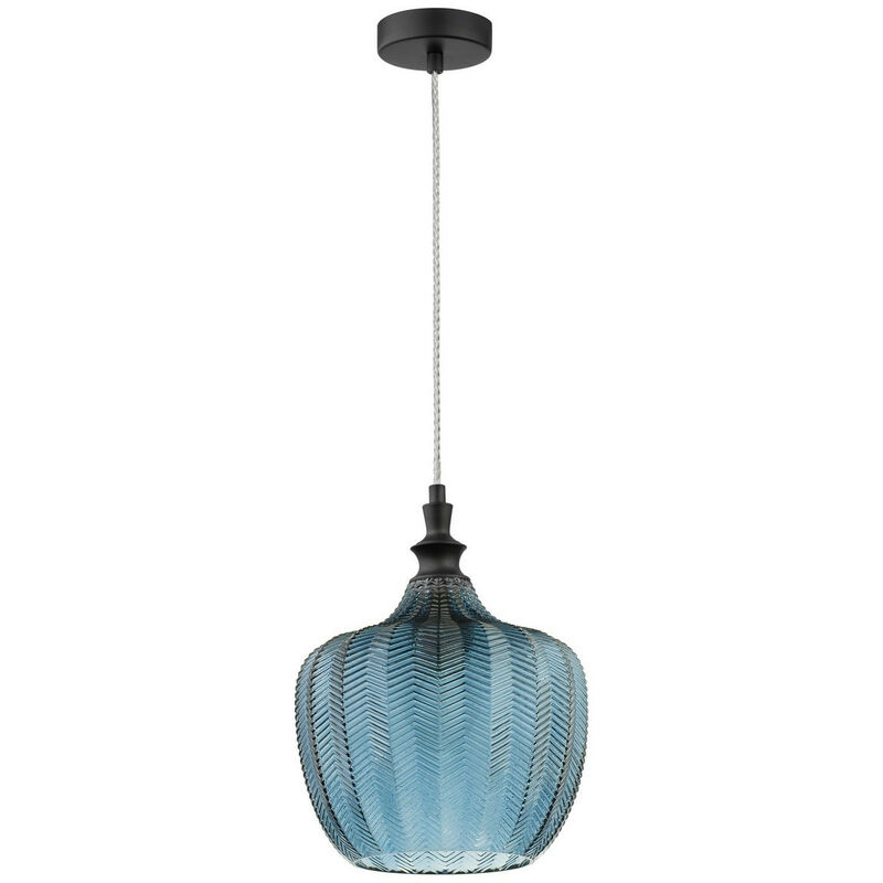 Merano Frisco Plafoniera a Sospensione Cupola Metallo Nero Opaco Vetro Blu Scuro LED E27 | Finitura: blu scuro | Materiale: metallo, vetro | Classificazione IP: IP20 | Altezza: 120 cm | Lunghezza: 24 cm | Larghezza: 32 cm | Tipo di lampada: E27 | N. di lampade: 1 | Lampadina inclusa: No | Dimmerabile: No | Peso: 1,6 kg | Potenza (massima): 1x12W