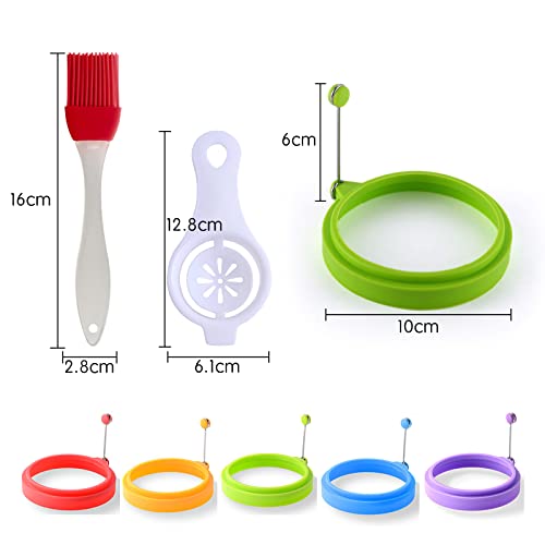 Frittata in Silicone Anelli Uova, Muffa Dell'uovo Fritto Frittata di Uova in Silicone, Set di 5 Anelli per Uova Con Spazzola in Silicone, Separatore di Uova, Adatto per Uova Fritte, Frittelle