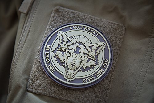 Fritz Meinecke Toppa in gomma con immagine di lupo e scritta in lingua inglese, effetto 3D, di colore verde oliva