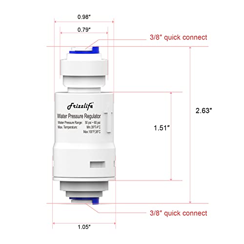 Frizzlife PRV3 Filtro Acqua Valvola di Protezione Regolatore di Pressione Per Osmosi Inversa & Sistema Filtro Acqua 60PSI, 3/8" Quick Connect Push Fit