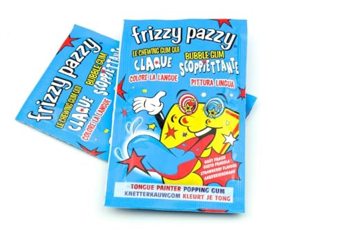 Selezione dei leggendari Frizzy Pizzy, 5 confezioni al gusto fragola, 5 al gusto cola e 5 lingua blu. Divertiti con i tuoi amici ad avere lingue coloratissime con questi tingi lingua scoppiettanti !