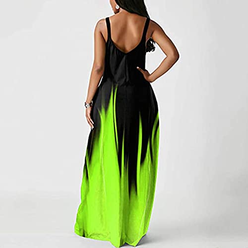 FRMUIC - Vestito da spiaggia, da donna, lungo, estivo, casual, chic, scollo a V, senza maniche, stampa verde X-XL