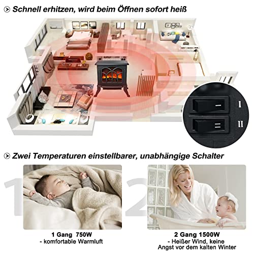 Froadp 1500W Caminetti Elettrici, Riscaldatore Elettrico a Parete, Termostato Nero Della Stanza del Camino Elettrico Portatile, Stufa del Riscaldatore con LED Effetto Fiamma