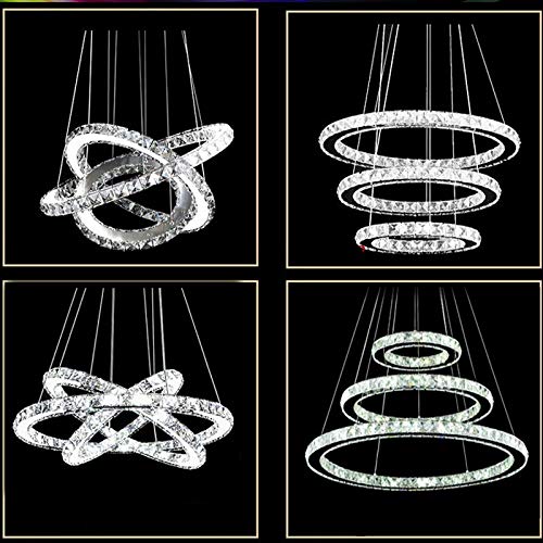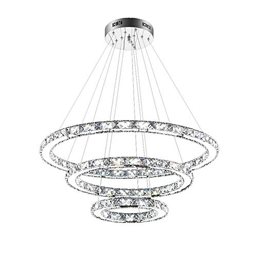 Froadp 72W Tre Anelli di Cristallo Lampada a Sospensione, Materiale di vetro di cristallo, LED Moderni Lampadario para Camera da Letto e Sala da Pranzo e Corridoio e Soggiorno, Ø20cm+Ø40cm+Ø60cm