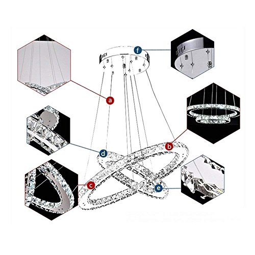 【Lampada a sospensione a tre anelli】Potenza: 72W, dimensioni: Ø20cm + Ø40cm + Ø60cm, materiale: acciaio inossidabile, cristallo, altezza regolabile: 100-1500m, voltaggio: AC 220V, angolo di emissione: 120°, classe di efficienza energetica: A++, temperatura colore: bianco freddo (6.000 - 6.500K ), senza telecomando.