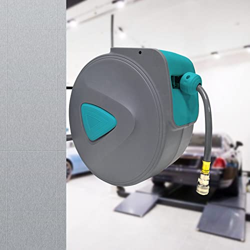 Froadp Avvolgitubo con 1/4" Attacco Rapido, Riavvolgimento Automatico per Tubi d'aria Compressa, Arrotolatore con 180° Rotante Supporto a Parete(20m, Grigio)