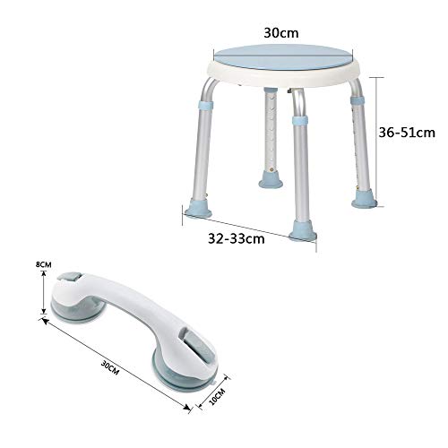 【Sgabello da bagno in alluminio con Manico】Diverse versioni disponibili: Type A - versione rotonda girevole a 360° / Type B - versione quadrata. Lunghezza del manico: circa 30cm, ventosa: Ø10cm, materiale: plastica, capacità di peso 20KG.
