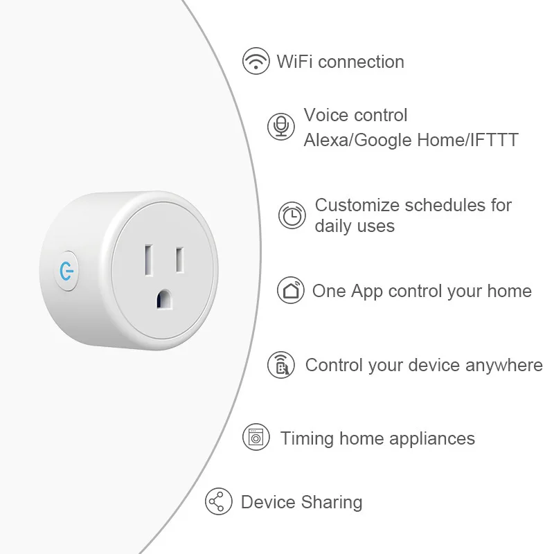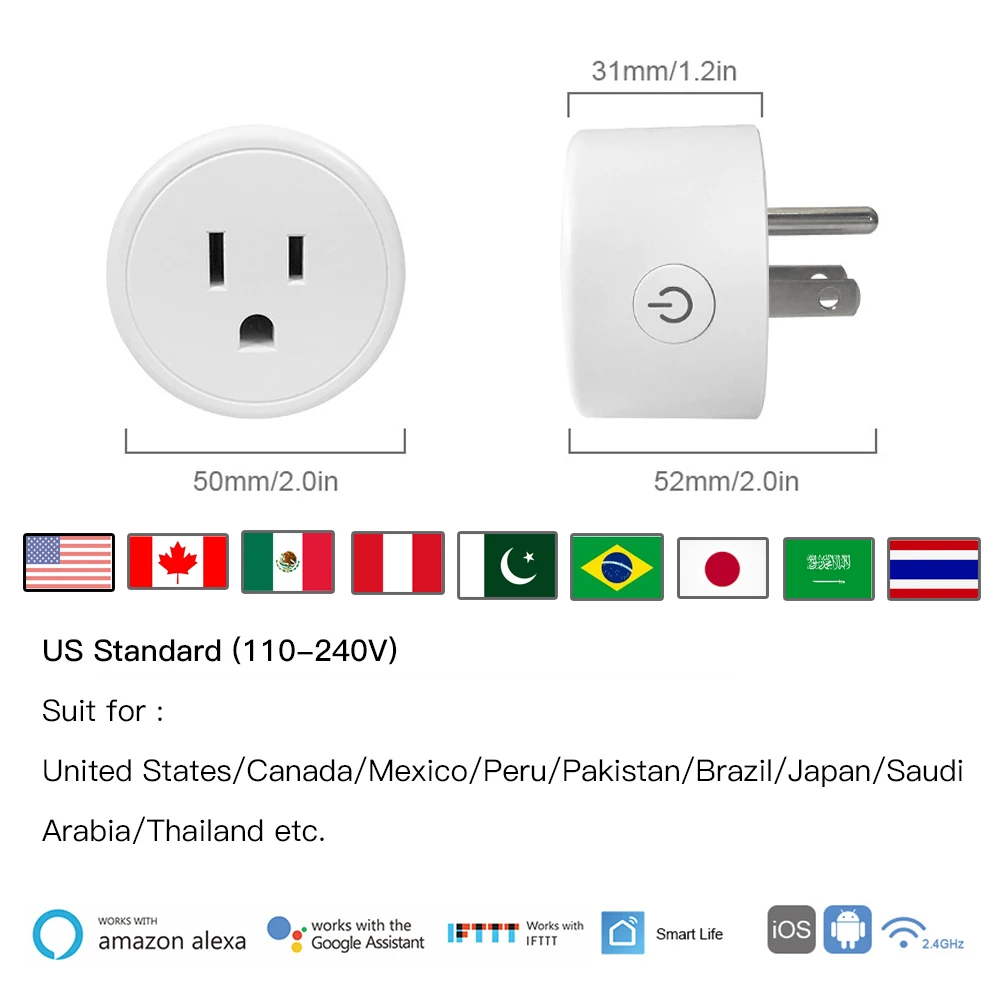 FROGBRO Wifi Smart Plug US 110-240V Voice Control with Surge Protector Socket Outlet Timing Function Work With Alexa Google Home