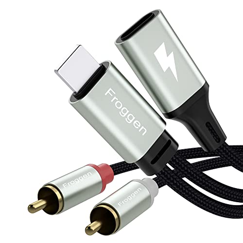 Froggen Cavo Adattatore Lightning a 2RCA Maschio Audio Stereo con ricarica Compatibile con iPhone/Lightning/iOS/Pad/Pod per Altoparlante, Amplificatore, DVD, Home Theater